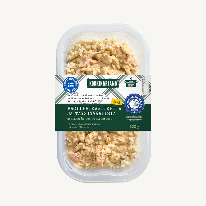 Broilerikastiketta ja täysjyväriisiä 500 g, laktoositon, gluteeniton