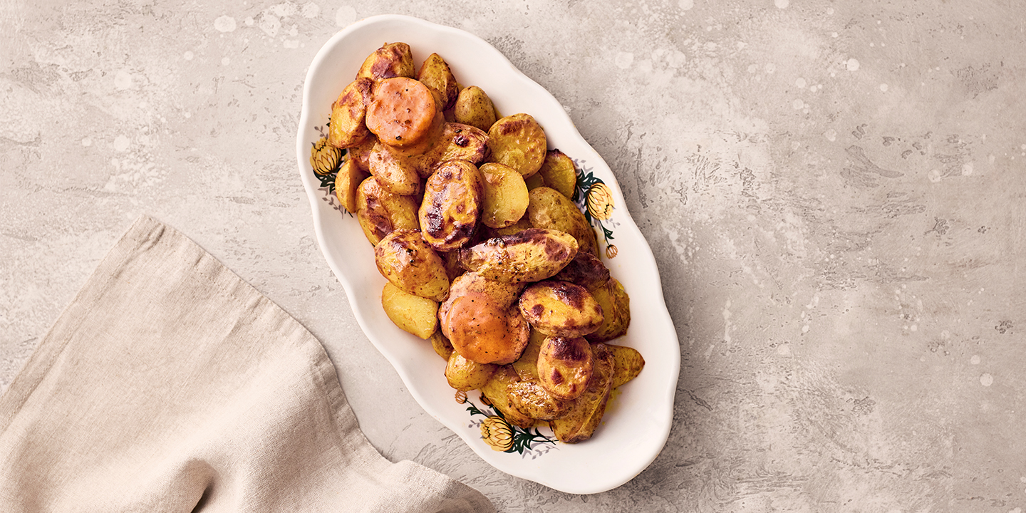 Kun tekee mieli muuta kuin perinteistä pottua. Valmiiksi kypsät perunat saavat syvemmän maun täyteläisestä maustevoista. Nopeasti uunissa tai grillissä valmiiksi – helppo lisuke monenlaiseen ruokaan.