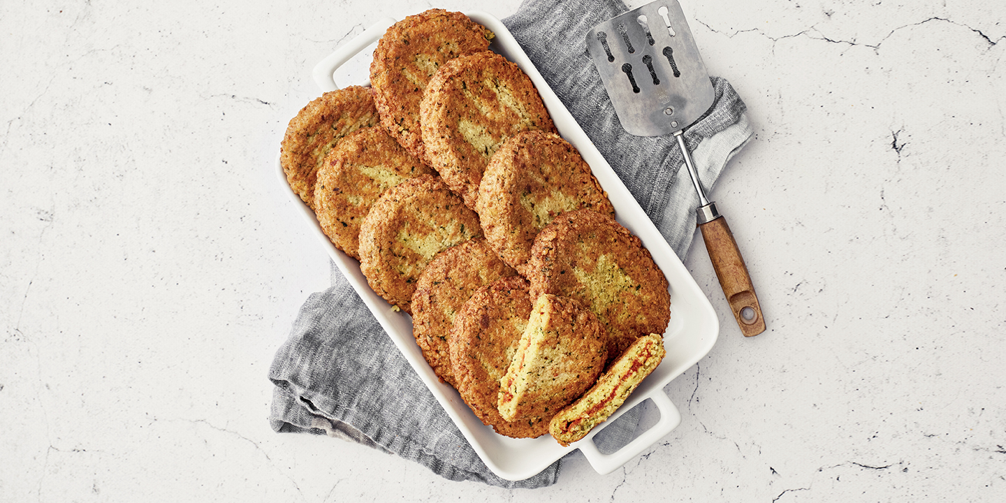 Kuluttajien pyynnöstä tuotiin palvelutiskiin täytetyt falafelpihvit. Makua ja mehevyyttä pihviin antaa paahdettu munakoiso-tomaattitäyte. Mausteena ripaus sitruunankuorta sekä juustokuminaa. Pihvit sopivat pöytään vaikkapa feta-kasviskiusauksen kanssa.
